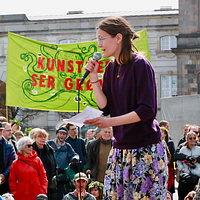 Så når jeg hører, at der trods alt findes mennesker, som samler sig og gør oprør for at få minimum 30 % beskyttet vild natur, så bliver jeg meget glad. De siger også, at det skal være slut med pesticider og slut med at gøre det muligt at udvide landbruget, så derfor skal bankerne stoppe med at låne penge ud til det industrielle landbrug.