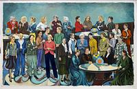 Jeg kunne fortælle så meget om mine kunstneriske overvejelser i dette maleri, om hvordan jeg har malet adskillige af de portrætterede tre, fire, fem og seks gange, fordi det var vigtigt at de lige præcis stod rigtigt og i forhold til den ene og den anden.
